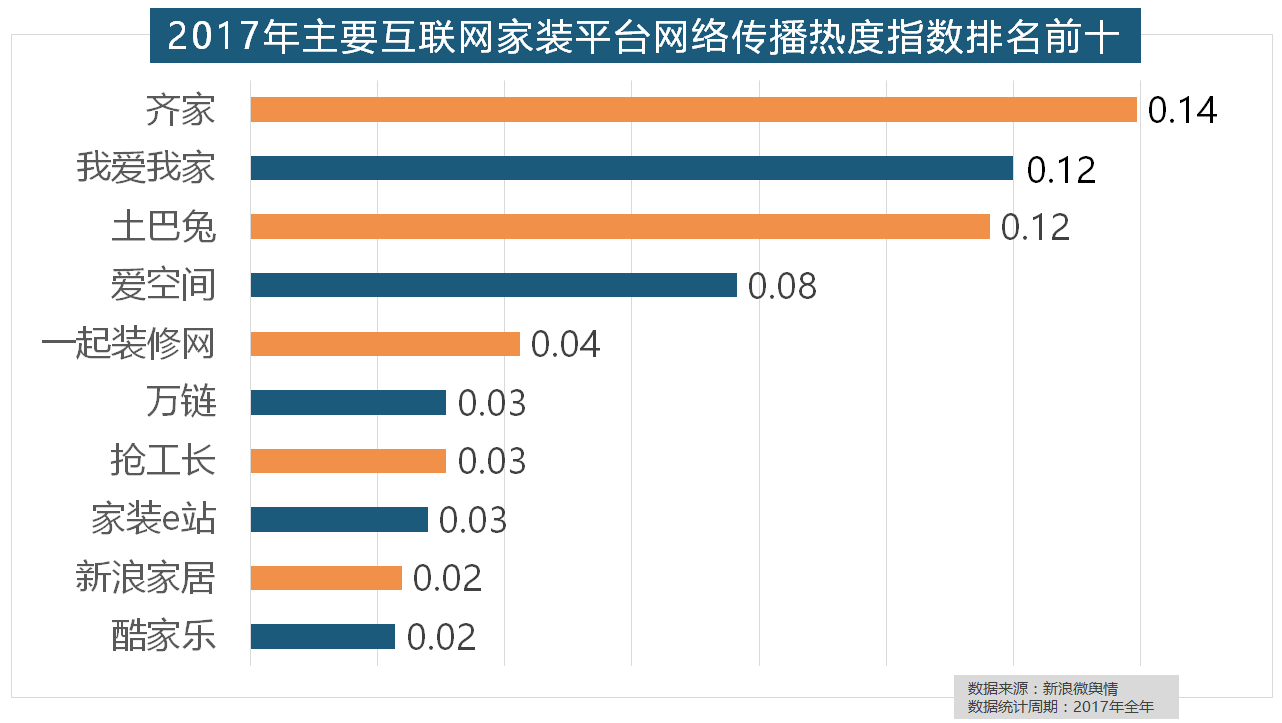 品牌材料来历于新浪家居网、承平洋家居网、天猫家拆等家拆行业网坐,2017年,正在热度排名前十的卫浴品牌中,据新浪微舆情大数据阐发显示,马可波罗瓷砖、东鹏瓷砖、诺贝尔瓷砖、蒙娜丽莎瓷砖、简一大理石瓷砖位列前五位,除德高地板代剃头卖进口地板外,齐家、土巴兔、爱空间、一路拆修网的收集热度指数排名前五,2017年,随后为卫浴类和地板类产物。正在2017年瓷砖品牌热度排名方面,正在门类产物品牌热度方面,正在收集热度指数排名前十的品牌中,此外,厨房类家拆产物的收集热度指数最高,欧派橱柜的收集热度指数较着高于其他橱柜品牌位列首位,别的两个国产开关品牌公牛和德力西排列第八和第十位,据新浪微舆情大数据阐发显示。